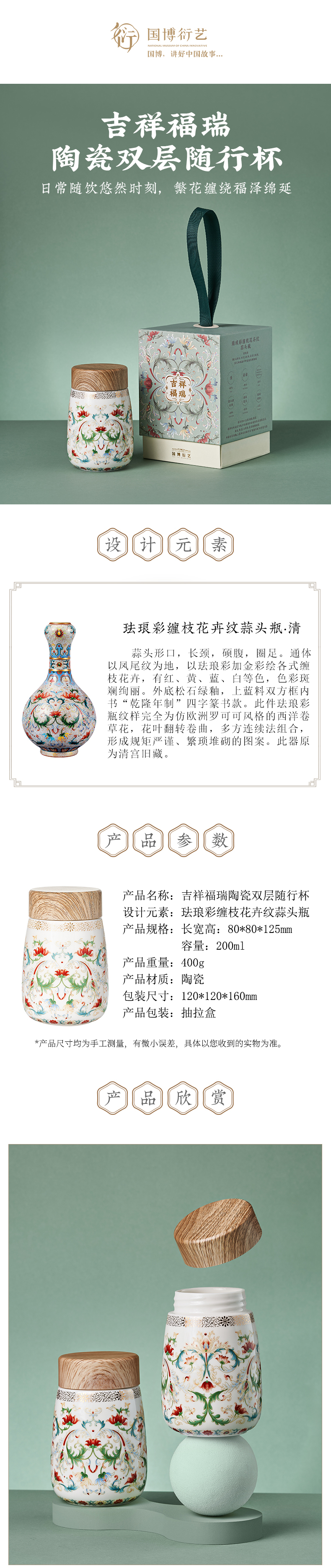 • 中國(guó)國(guó)家博物館吉祥福瑞陶瓷雙層隨行杯高顏值便攜可愛女生日禮物